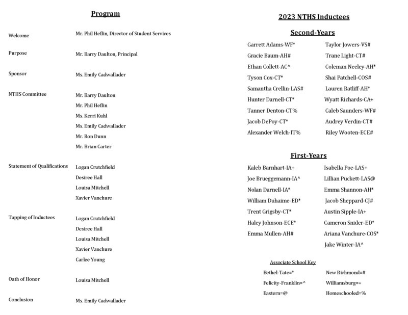 This was Grant Career Center's Largest Induction Ceremony in school history. The evening was followed up with a reception and photos with friends and family in the school Gallery. The ceremony was a time for the new students to reflect on their accomplishments and for faculty and staff to celebrate with them. The event included remarks from Mr. Barry Daulton, Principal, Mr. Phil Heflin, Director of Student Services, and NTHS Members Logan Crutchfield, Desiree Hall, Louisa Mitchell, and Xavier Vanchure.