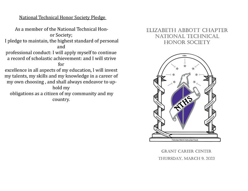Grant Career Center's National Technical Honor Society Induction Ceremony was held on March 9, 2023. The ceremony was held in Grant Career Center’s cafeteria, which was filled with family members and friends of inductees. The first speaker was Mike Parry, Superintendent of Grant Career Center. Mr. Parry began his speech by thanking everyone for attending and went on to thank the parents and students for choosing and trusting Grant Career Center with educating their students.