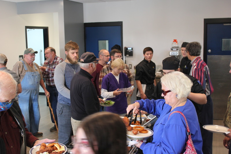 On, November 12, 2021, Grant Career Center held a Veterans Luncheon to honor all those who had served. 67 Veterans and their guests enjoyed the program, delicious food, and good conversations. There were plenty of handshakes and introductions as students introduced their veterans to their teachers and peers. The Culinary Arts Program prepared fresh fried fish and sides for the Veterans Luncheon. Many of the veterans were family members of Grant students and Staff. Veterans were greeted by the Grant Career Center Student Ambassadors and Student Council who put on a small program for the veterans before the food was served. It was a wonderful event for the veterans and the students who attended.