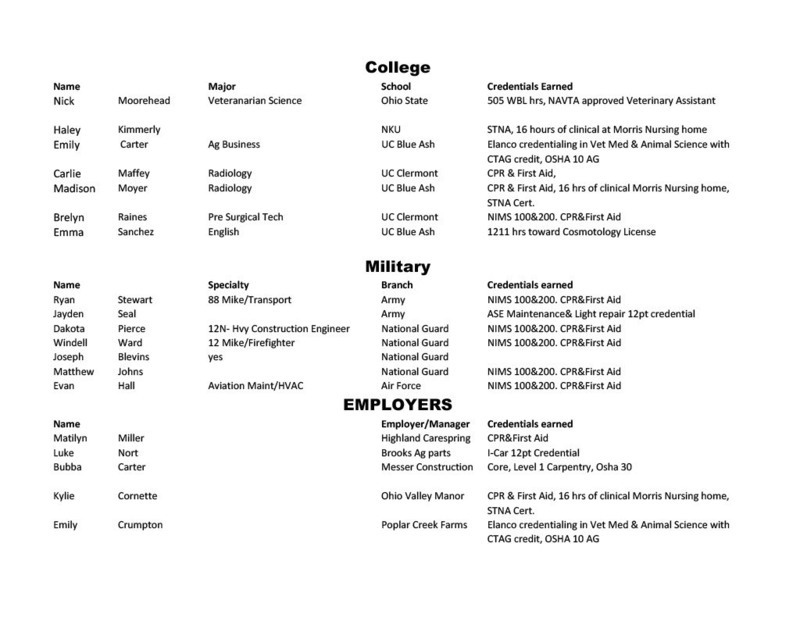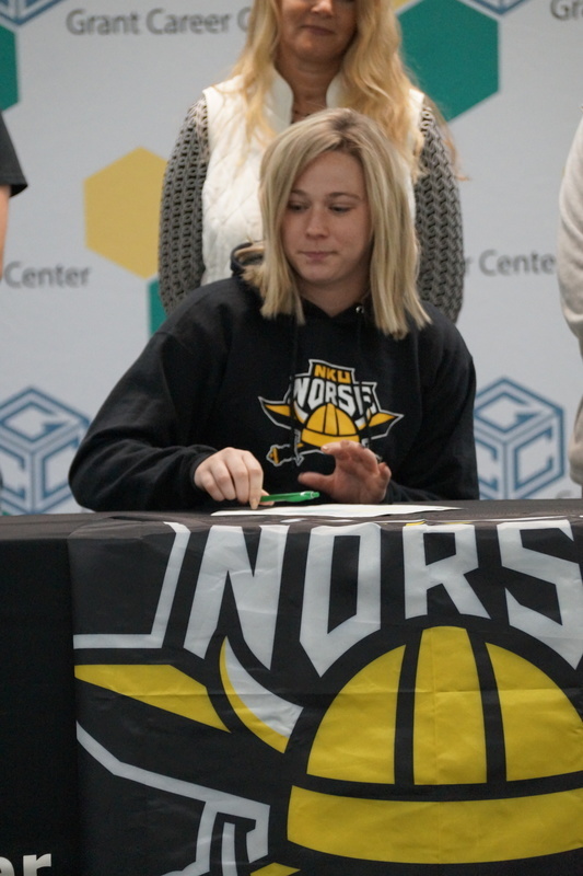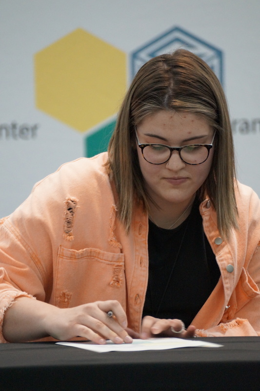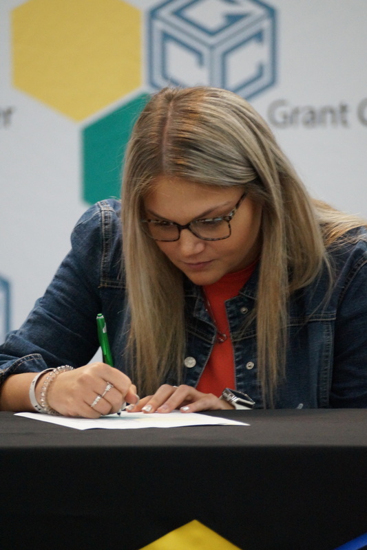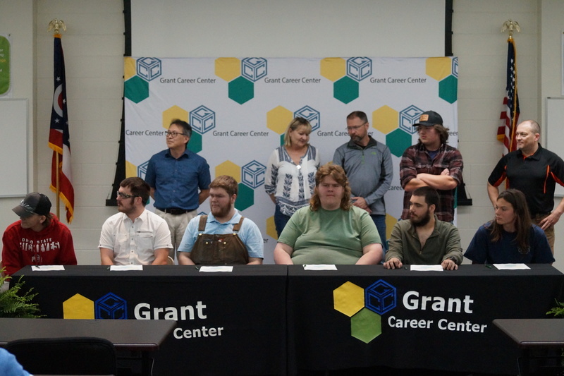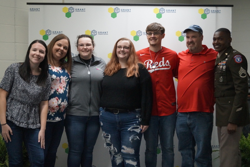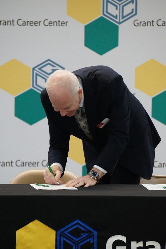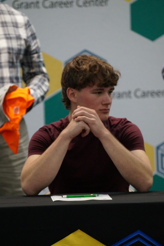 Grant Career Center held their annual Signing Day on Thursday, April 28, 2022. Students who plan to attending college, joining the military, or being offered full-time work following graduation were asked to participate. The program was hosted by Chad Graybill, Work Based Learning Coordinator, and Jaimie Smith, Instructional Coach. We had 12 businesses on campus that recognized 16 students who are currently employed and plan to continue their careers with full-time employment. Seven students from Grant Career Center have pledged and committed to join the United States Armed Forces.