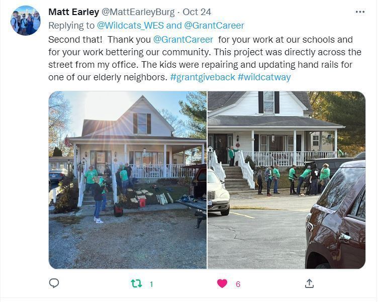 The Grant Career Center held its very first Service Learning Day, on Oct 24th which we call THE GRANT GIVE BACK. Over 300 students canvassed Southern Clermont County using their talents to paint, repair, build, and revitalize 30 public and private properties, while completing 61 projects in the school districts that Grant Career Center serves: Bethel-Tate Local Schools, Williamsburg Local School District, Felicity- Franklin Local School District, and New Richmond Exempted Village School District.